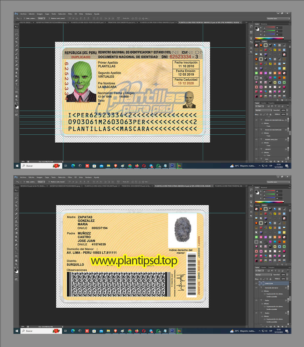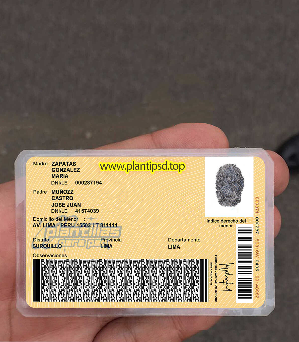 DNI Amarillo Peru – Plantilla Digital Editable en Photoshop