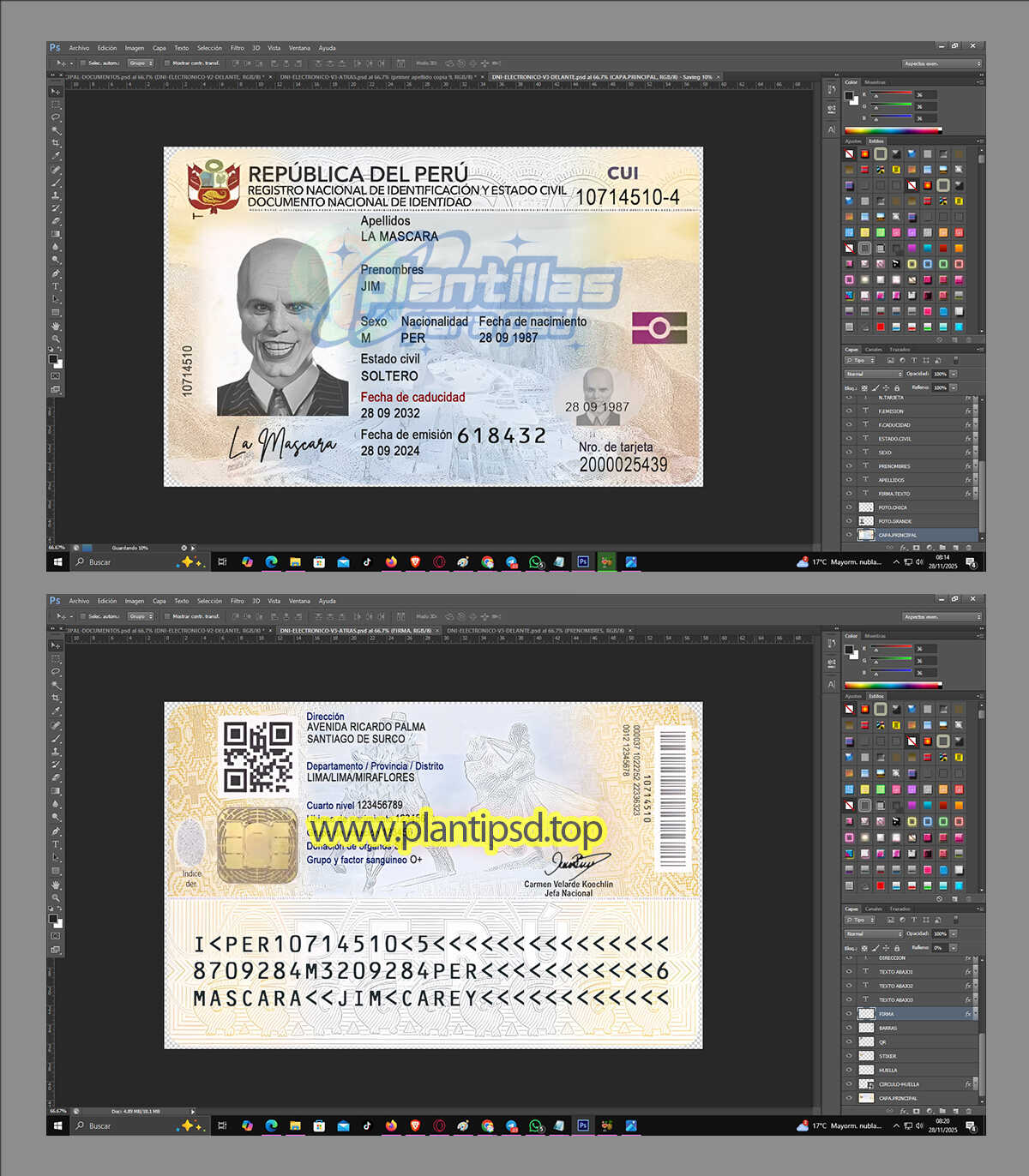 DNI Electronico de Peru Modelo 3 – Plantilla Digital Editable en Photoshop