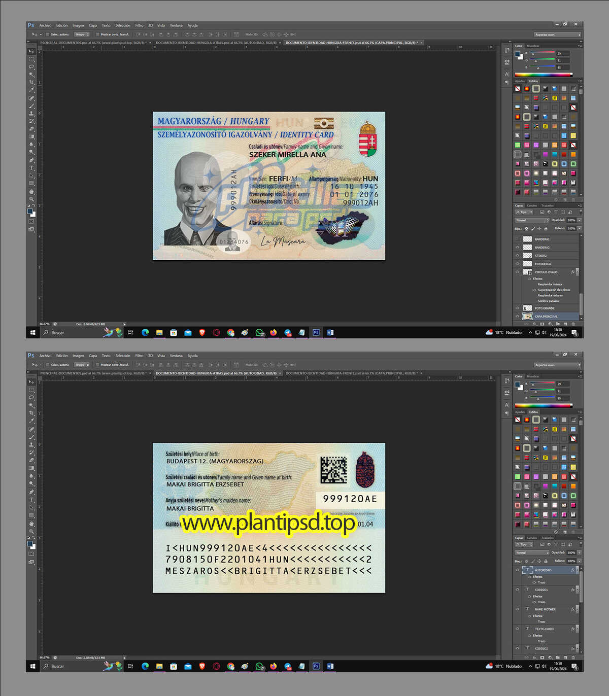 Documento de Identidad Hungria – Plantilla Digital Editable en Photoshop
