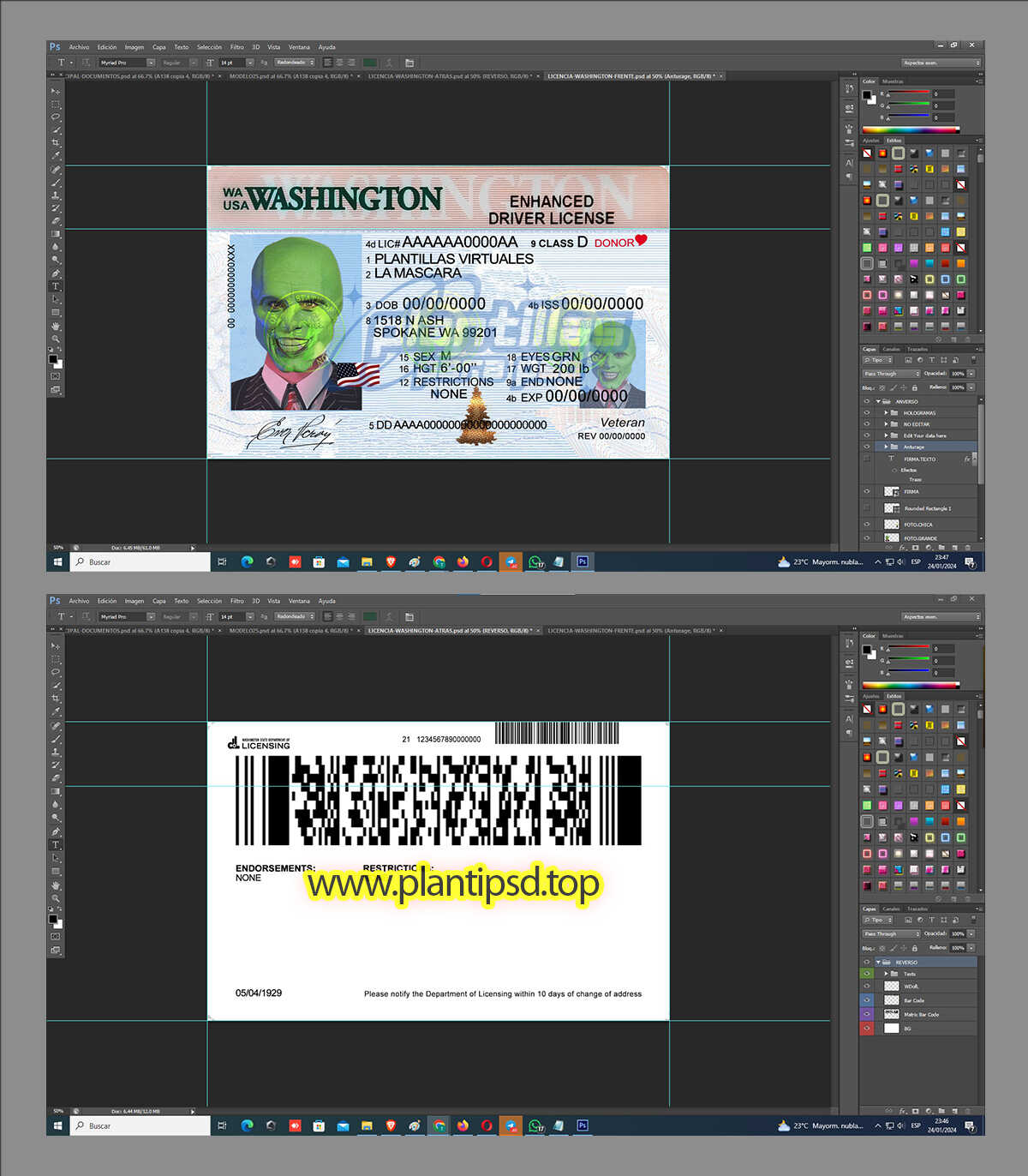 Licencia de Conducir de Washington USA – Plantilla Digital Editable en Photoshop