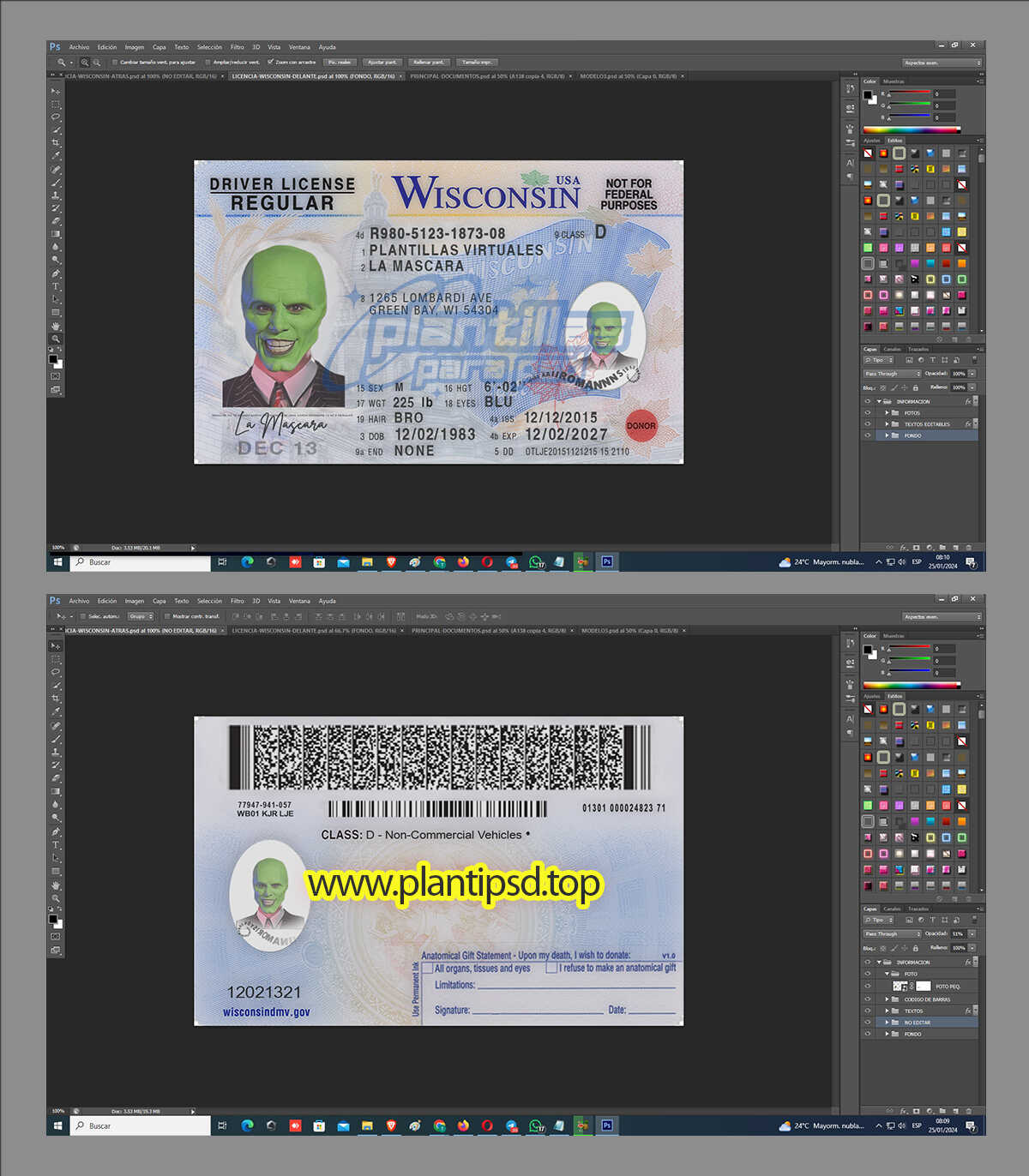 Licencia de Conducir de Wisconsin USA – Plantilla Digital Editable en Photoshop