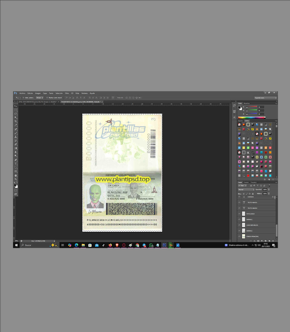 Pasaporte de Ecuador – Plantilla Digital Editable en Photoshop